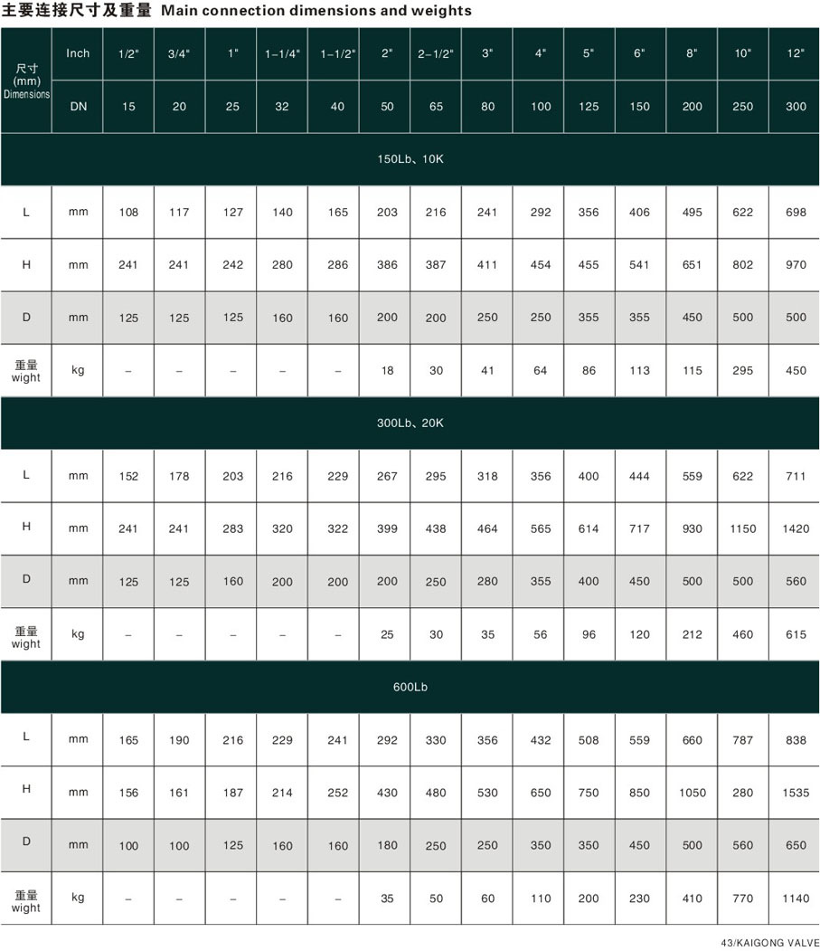 3、法蘭型式及尺寸:150/300/60OLb按ANSI B16.5JIS 10K、20K按JIS B2212~B2214