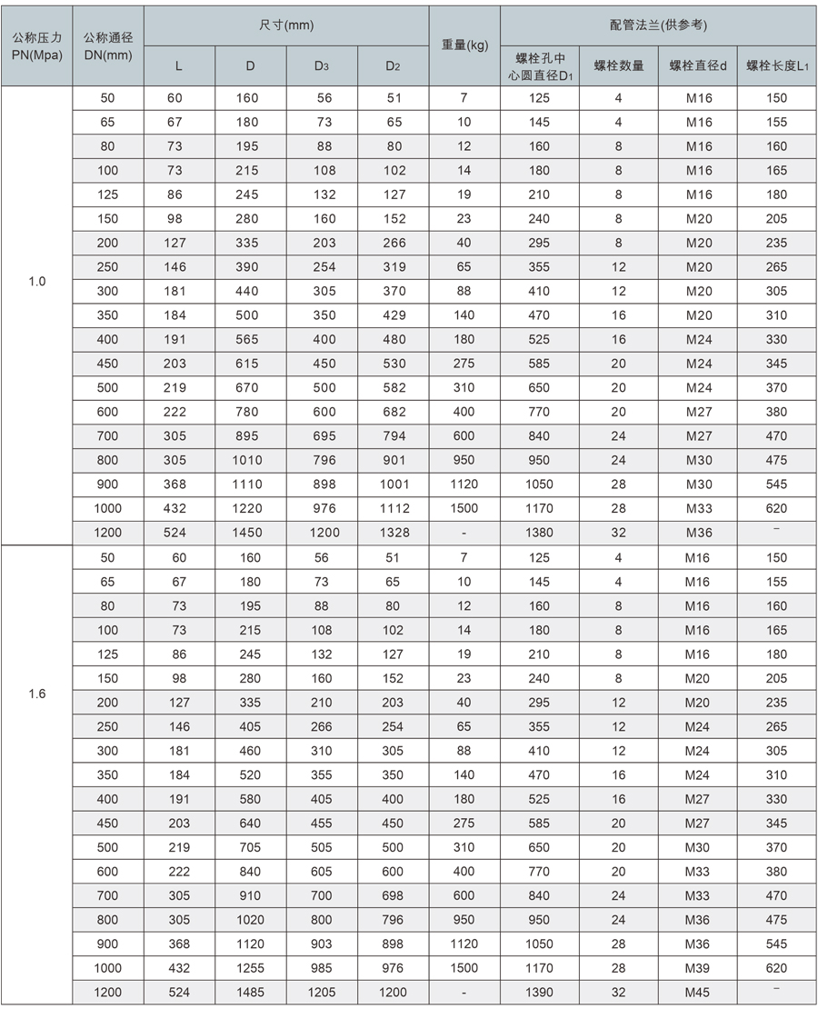 H46法蘭式雙瓣旋啟止回閥主要尺寸及規(guī)格